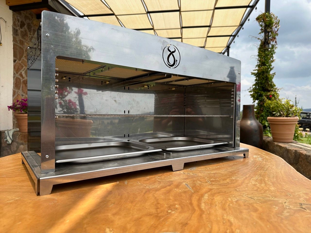 The Hellfire800+ with two burners and much more space for food to be grilled is perfect for both private and commercial use. Technically, it differs from the small Hellfire800 only by its two burners.